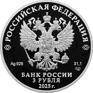 Серебряная монета номиналом 3 руб. имеет массу драгметалла в чистоте – 31,1 г, проба сплава – 925, тираж составляет 3,0 тыс. штук.